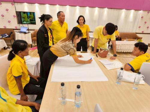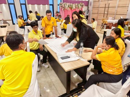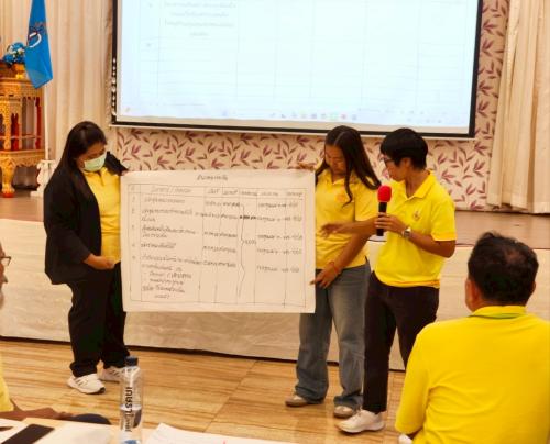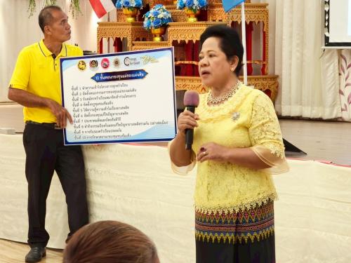 - การแบ่งกลุ่มฝึกเป็นวิทยากรบรรยายกระบวนการ 10 ขั้นตอนกองทุนแม่ของแผ่นดิน และขนมเค้กโดยวิทยากร (ครู ค) ทุกอำเภอ
